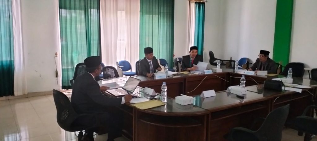 Bertindak sebagai Ketua Sidang sekaligus Penguji I adalah Dr. KH. Muhammad Syakur, S.Sy., M.H., dengan Sekretaris Sidang Dr. Muhamad Jamal, S.H.I., S.H., M.H. Adapun jajaran penguji terdiri atas Dr. Hamidulloh Ibda, M.Pd., sebagai Penguji II dan Dr. Joni, M.Pd.BI., sebagai Penguji III, sementara Pembimbing tesis adalah Dr. Sumarjoko, S.H.I., M.S.I.